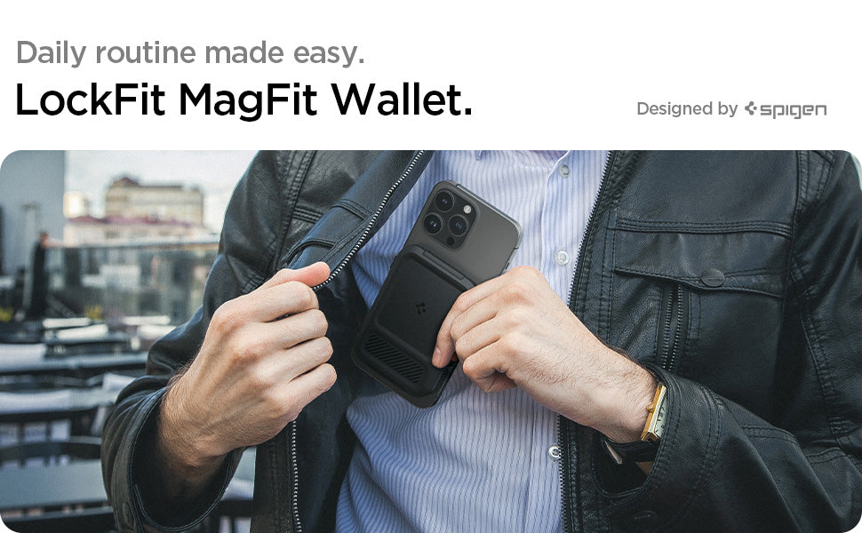 Secure your bag. The MagSafe Lock Fit Wallet keeps your money where your pocket is. Make sure you never lose a cent with its easy-to-use lock to strap in your cards and cash. Packed with MagSafe connectivity and lined with anti-slip webbing for a solid grip.