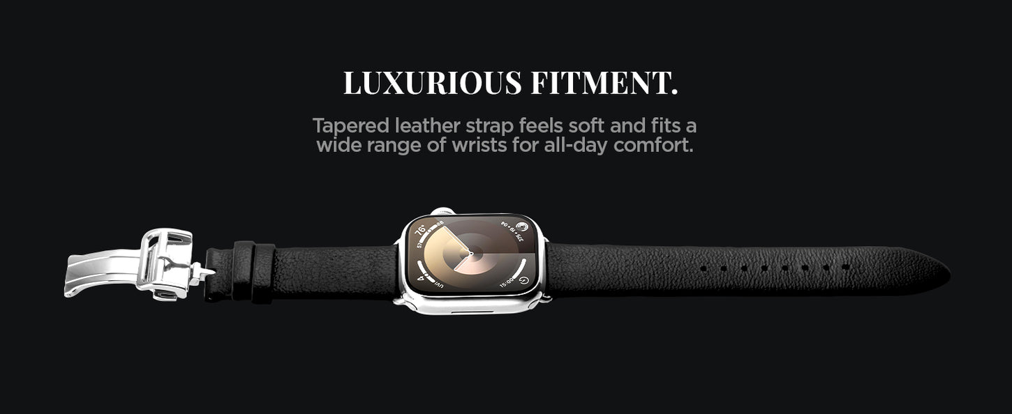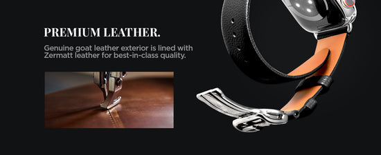 The greatest of all time. Elevate your Apple Watch with Enzo for luxury every hour. Crafted from Genuine Goat Leather and lined with Zermatt leather for durability and comfort day in, and day out. Its minute attention to detail features a tapered cut tailored to your wrist.