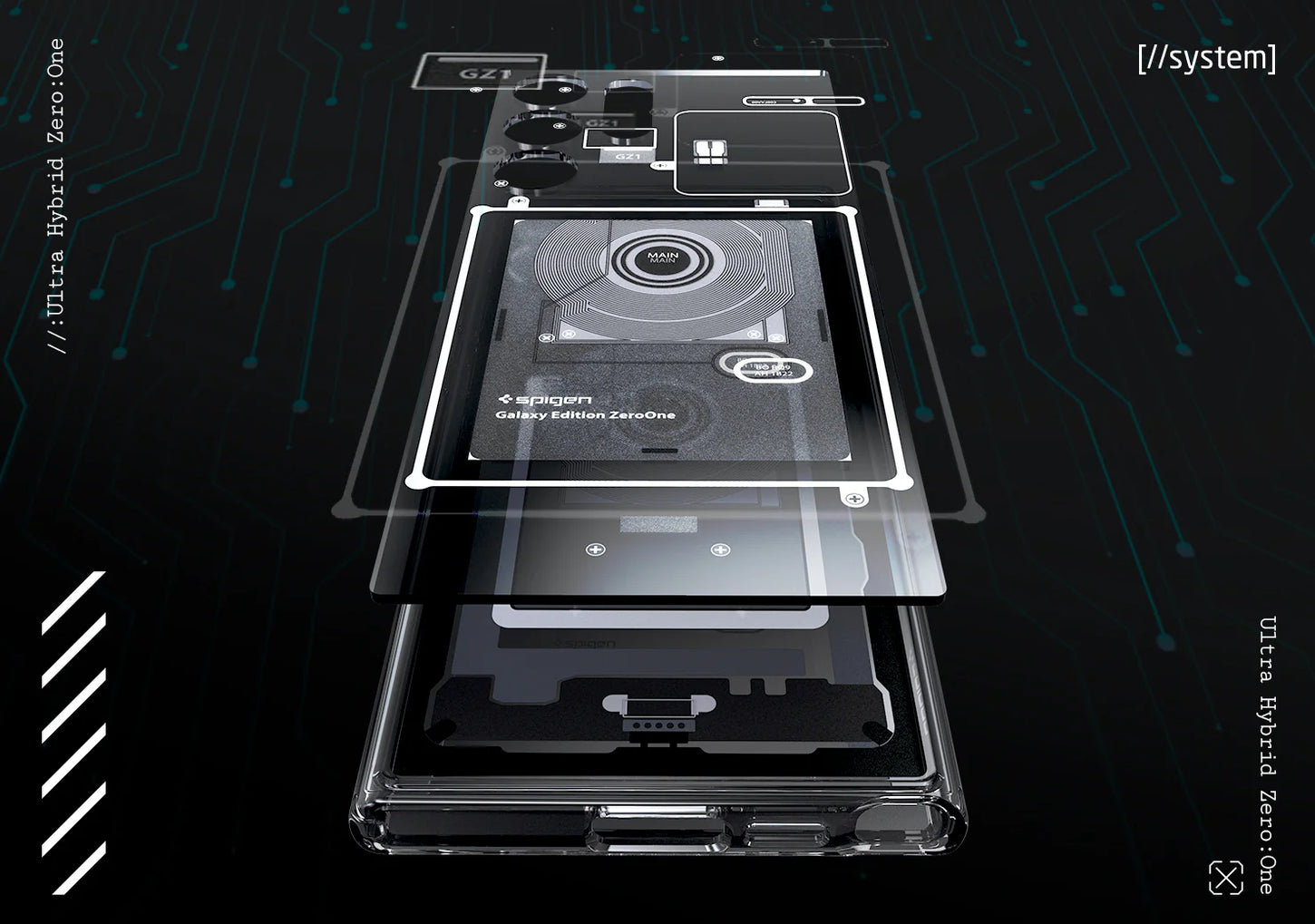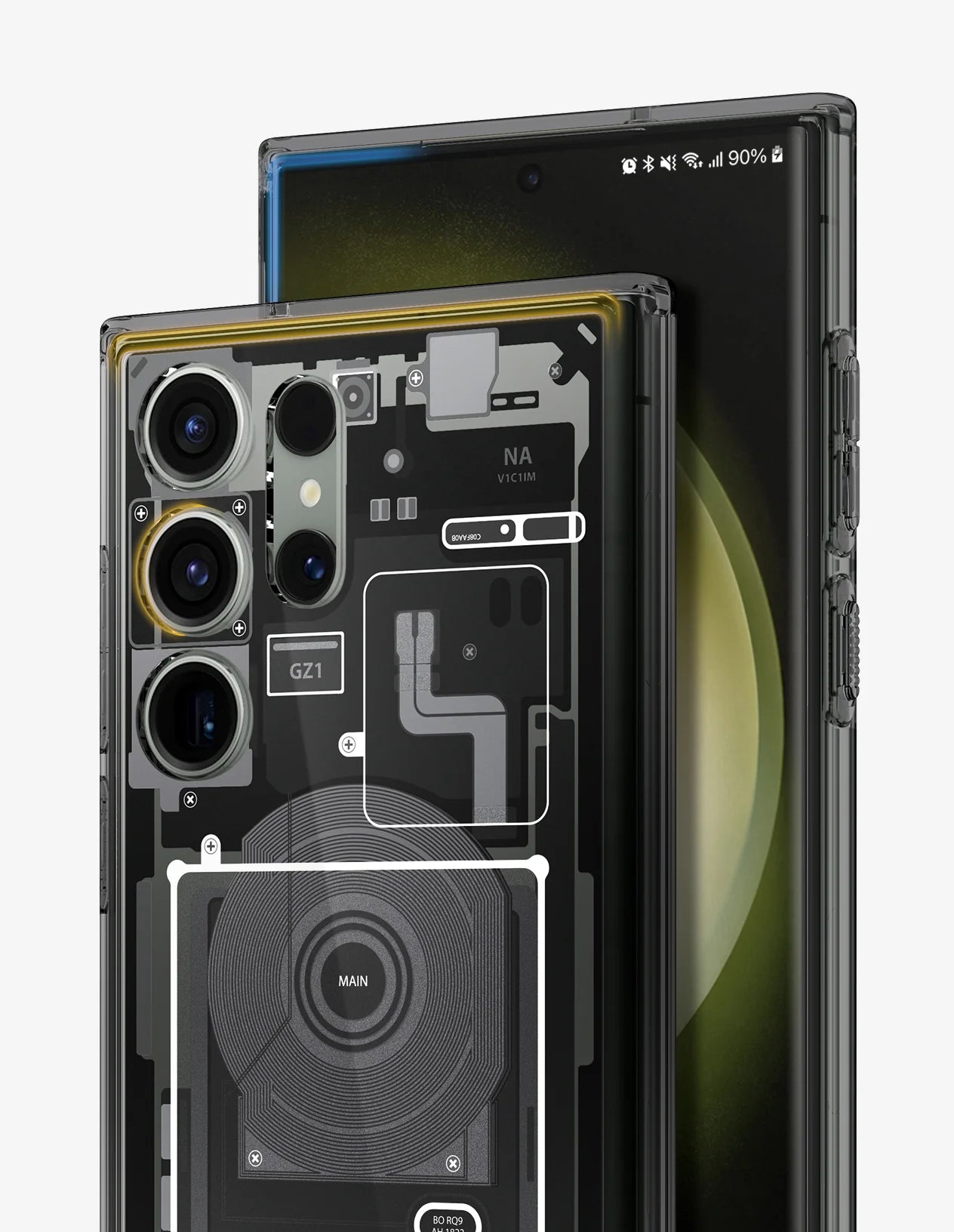 Unique teardown print highlights the sleek internal design of your S23 Ultra.