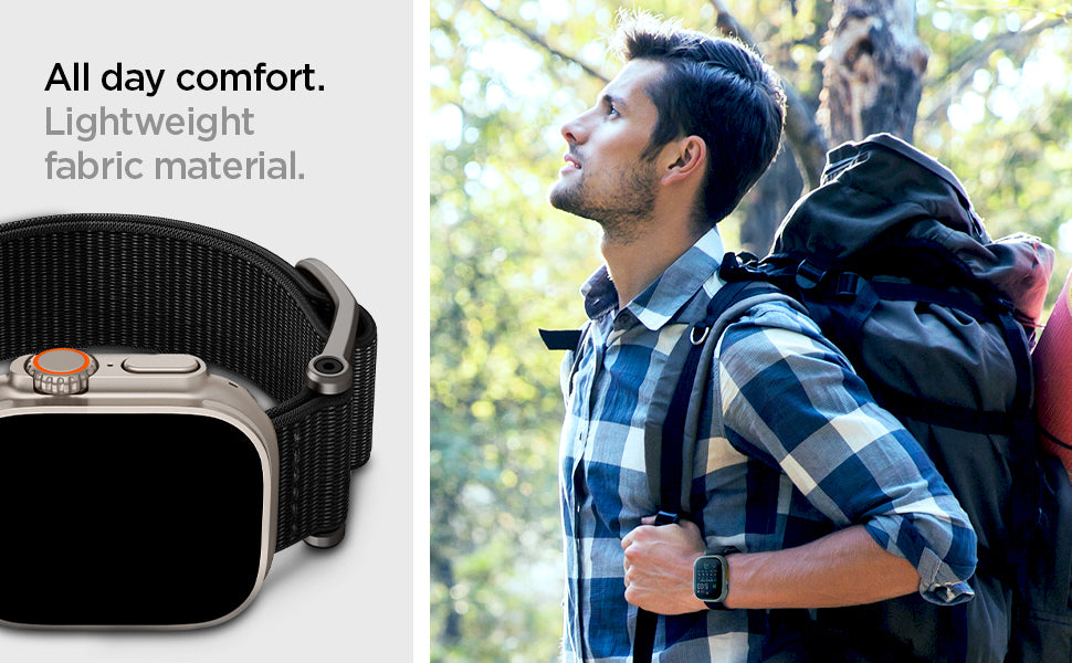 Waste no time for comfort. The DuraPro Flex Watch Band brings timeless style to your Apple Watch Ultra. New and improved with a broader nylon band that’s lightweight, breathable, and rugged. Plus, its metal buckle secures the watch band for the perfect fit and feel on your wrist.