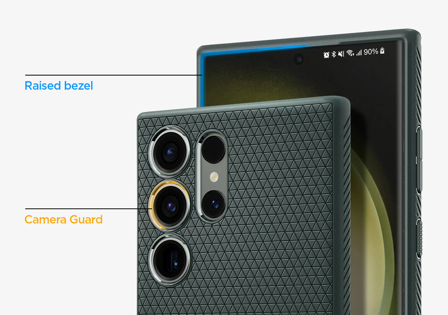 Raised lips help prevent surfaces scratches for camera and screen.