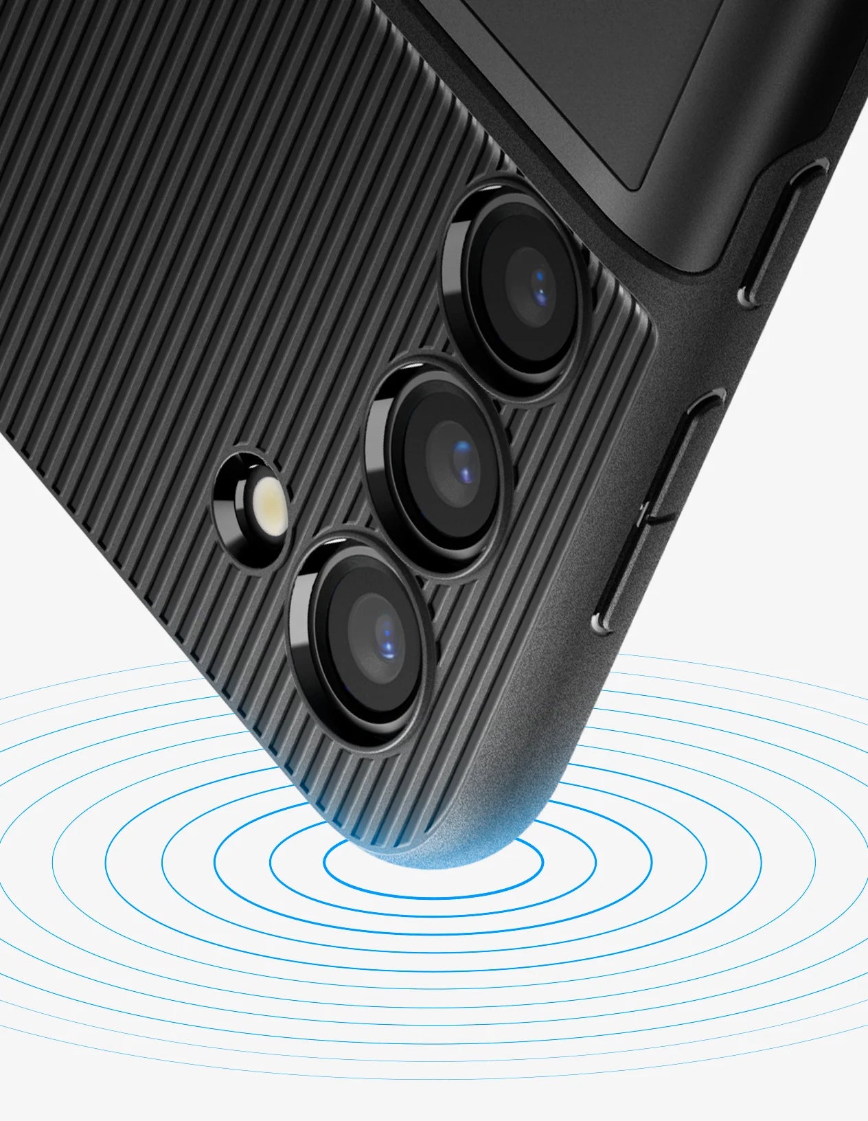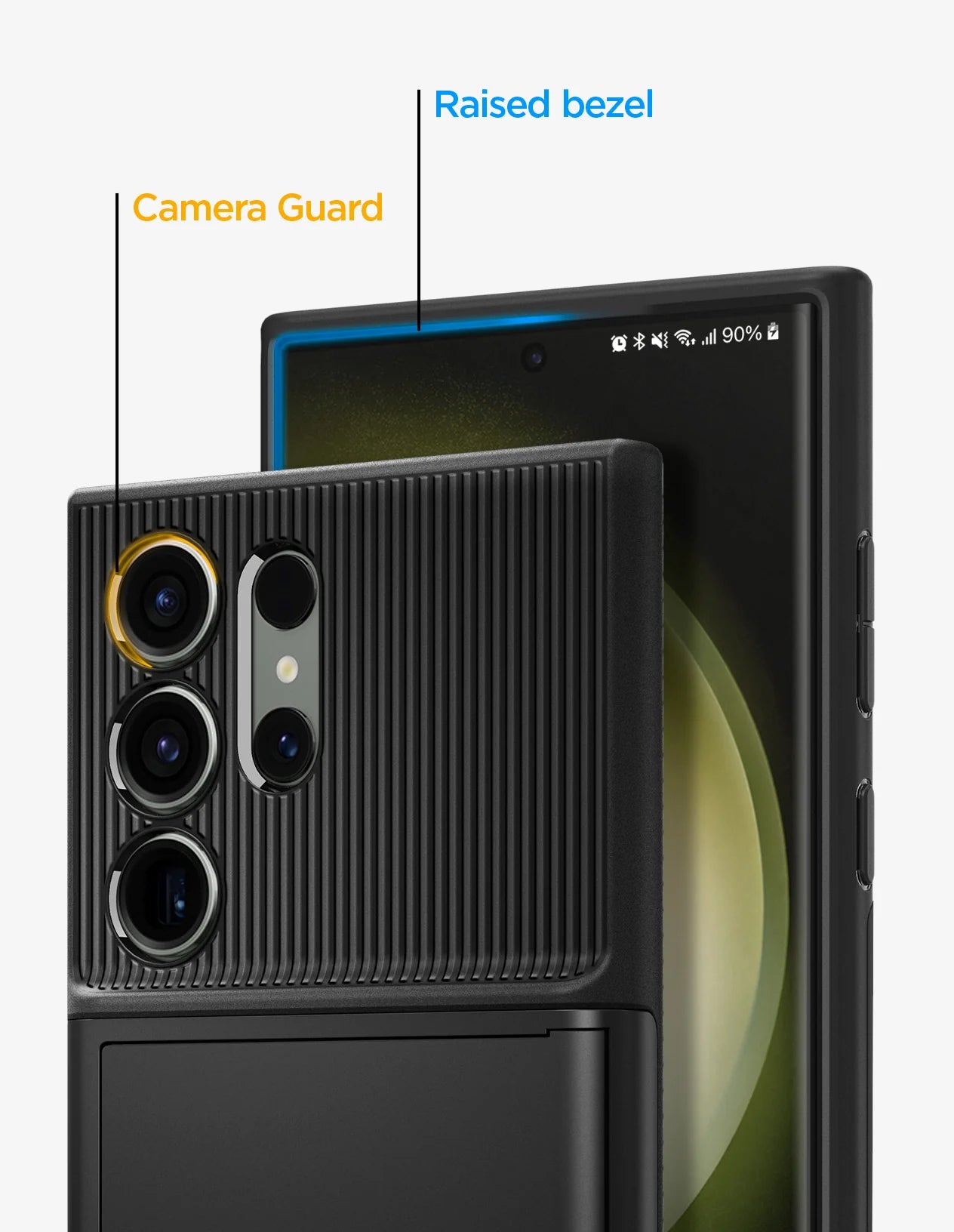 Raised lips help prevent surfaces scratches for camera and screen.