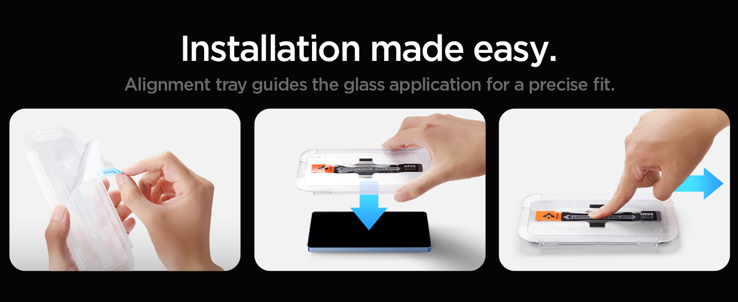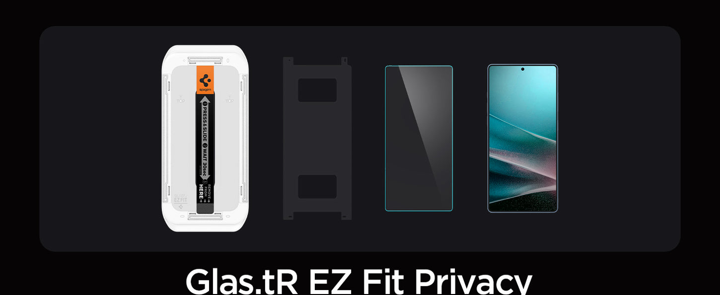 Be a hero. Save your screen and your time. EZ Fit Privacy takes the struggle away from installing a screen protector and stops shoulder surfers from taking a peek. Use the tray to align the screen protector on your Galaxy S25, press down, and you’re good to go. Easy does it.