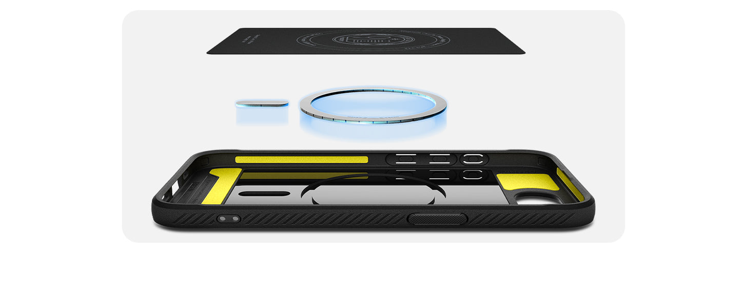 Rugged refined. The Rugged Amor MagFit celebrates a decade of protection with an all-new design for your iPhone. Modern carbon fiber detailing shines sleekly with multi-layered bumper protection on all corners. Ready with stronger magnets for MagSafe. Ready to take a punch.