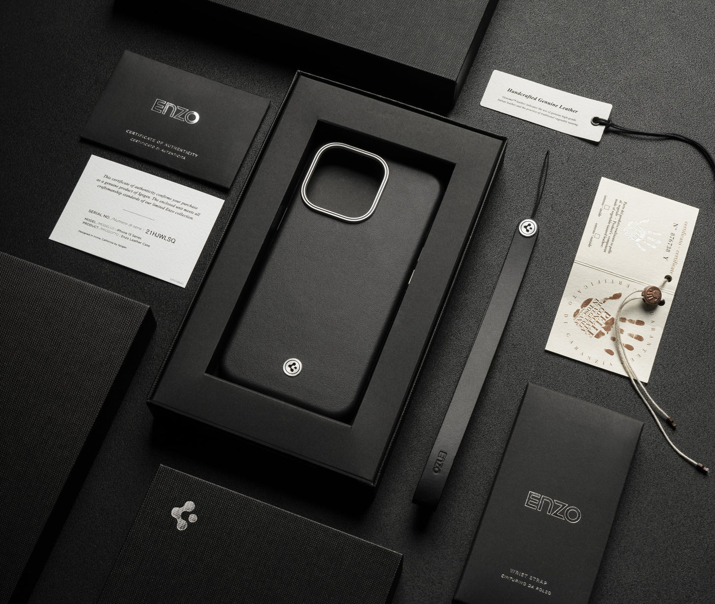 Italian leather accented with anodized aluminum. Soft suede interior with embedded magnet for seamless MagSafe functionality.